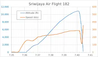 - ↑ «Sriwijaya Air flight #SJ182 lost more than 10,000 feet of altitude in less than one minute, about 4 minutes after departure from Jakarta». Flightradar24. Archivado desde el original el 9 de enero de 2021. Consultado el 9 de enero de 2021.