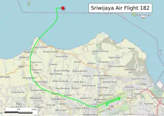 El vuelo 182 de Sriwijaya Air (SJ182/SJY182) fue un vuelo nacional de pasajeros indonesio operado por Sriwijaya Air desde el aeropuerto Internacional Soekarno-Hatta, Yakarta, al aeropuerto Internacional Supadio, Pontianak. El 9 de enero de 2021 por la tarde, la aeronave desapareció cuatro minutos después del despegue.[2][3][4] Las autoridades confirmaron que la aeronave se estrelló en las aguas de las Islas Seribu, a unas 19 millas náuticas (22 millas; 35 km) del aeropuerto, las 62 personas a bordo de la aeronave fallecieron. Una investigación preliminar especuló que los motores de la aeronave aún estaban funcionando en el momento del impacto.