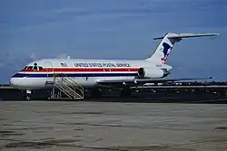 El avión realizó su primer vuelo en 1968 y fue entregado a Continental Airlines como aeronave de pasajeros en julio de ese mismo año, con el registro N8919. Operó con Continental durante cinco años. En octubre de 1973, fue transferido a Hughes Airwest y re-registrado como N9351. En octubre de 1980, pasó a manos de Republic Airlines, que operó la aeronave hasta junio de 1984, cuando fue convertida en carguero y entregada a Purolator Courier. Tres meses después, fue registrada como N565PC. En octubre de 1987, la aeronave fue transferida a Emery Worldwide Airlines. Ryan International Airlines comenzó a operar el avión en 1989, aunque seguía siendo propiedad de Emery Worldwide Airlines en el momento del accidente.[3]