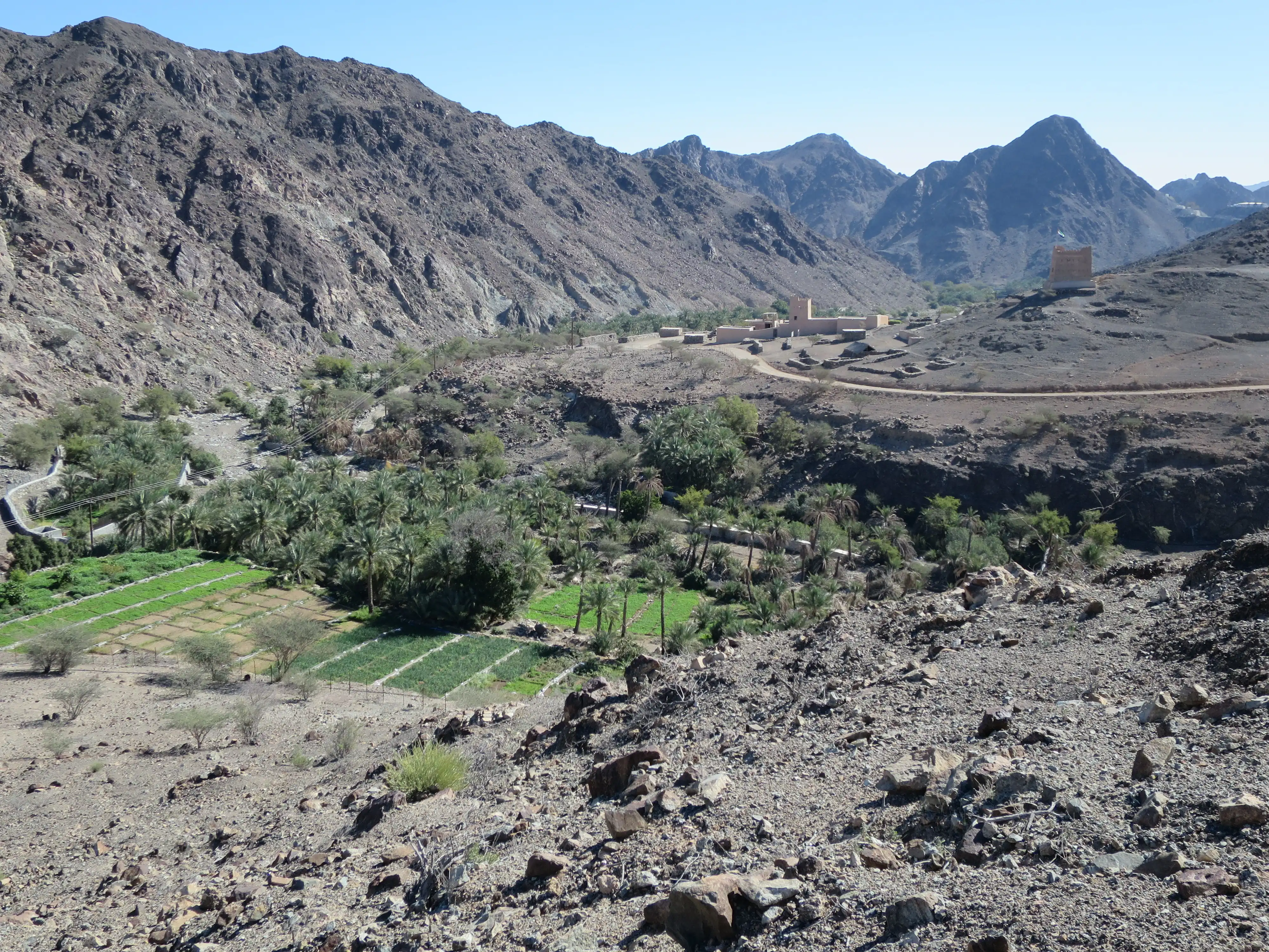 Fuerte de Hayl y torre vigía. Vista al noroeste, hacia el Wadi Hayl -
