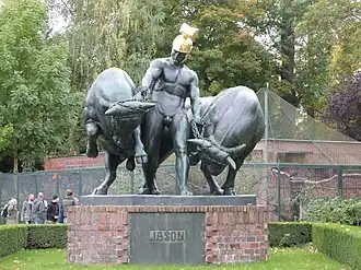 La monumental escultura Jasón y los toros de Eetes[2] presenta al héroe cuando acaba de dominar a los dos feroces animales, la primera de las tareas que le encomendó Eetes, rey de la Cólquida, cuando Jasón le exigió el vellocino de oro.[6]