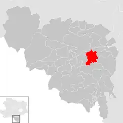 Se encuentra ubicada al sur del estado, al sur de Viena y del río Danubio y a poca distancia al norte de la frontera con el estado de Estiria.[2]