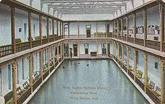 - ↑ a b c d e f g h i j k l m n ñ «History-West Baden Springs Hotel». French Lick Resort. Consultado el 23 de mayo de 2016.