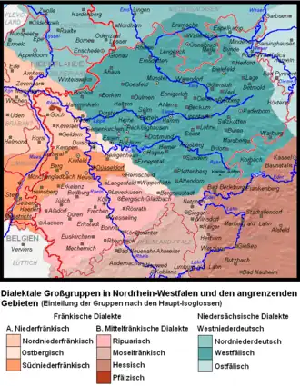 Dialectos de Renania del Norte-Westfalia. En verde oscuro, el westfaliano.