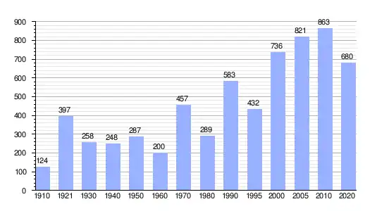 | Gráfica de evolución demográfica de Xocotitla entre 1910 y 2020 |