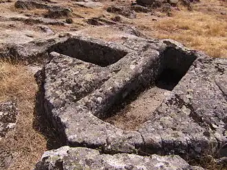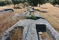 La gran profusión y dispersión de una necrópolis rupestre que puede tener como origen una posible cronología romana asociada a las estelas funerarias, continuando hasta etapas medievales, en forma de tumbas individualizadas excavadas sobre las masas y bolos de granito y que se documentan a lo largo de toda la mitad norte del yacimiento.