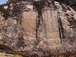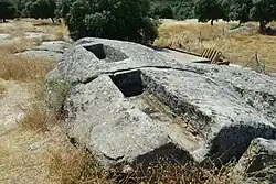 La existencia de al menos dos epígrafes funerarios votivos de tipo romano, con inscripciones de sus oferentes, insculpidos en un bolo granítico.