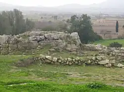 Tiene una estructura lineal (hilada de piedras). Se localiza delimitando el yacimiento por el oeste. La técnica constructiva usada para su elaboración fue la ciclópea, con bloques de una dimensión media de 0,49 m de anchura y 1,36 m de longitud. En cuanto a la longitud de la propia unidad, es de 18,05 m y con una anchura de 0,60 m. La altura máxima de la muralla es de 1,20 m y la mínima de 0,26 m, lo que da una media de 0,73 m.