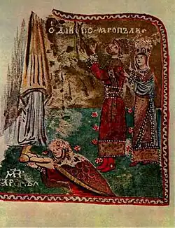 - ↑ «Миниатюры "Кодекса Гертруды". Апостол Петр с припадающей семьей князя Ярополка» (en ruso). Archivado desde el original el 10 de febrero de 2012. Consultado el 23 de febrero de 2012.