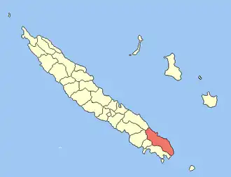 Localización de la comuna (en rojo) dentro de Nueva Caledonia. | ||