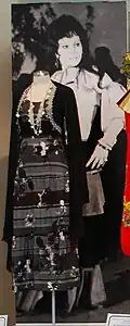 Uno de los vestidos que Fanny Cano usó para la telenovela, y una fotografía de ella. | ||