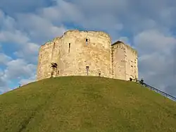 - La Torre Clifford, es una de las dos torres que los normandos erigieron en cada lado del río sobre motas artificiales: la del oeste desapareció excepto su mota: Baile Hill; la del este es la reconstrucción del siglo XIII tras las revueltas de 1190 contra los judíos.