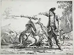 Artillero persa del siglo XVII disparando un zamburak. | ||