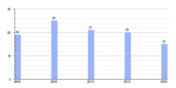 | Gráfica de evolución demográfica de Zapateira entre 2000 y 2020 |