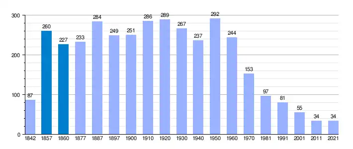| Gráfica de evolución demográfica de Zarzosa de Río Pisuerga[12] entre 1842 y 2021 |