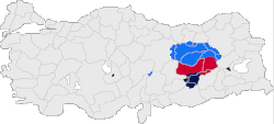 | Región | Turquía oriental (Bingöl, Elazığ, Tunceli, Diyarbakır, Erzincan, Erzurum, Muş, Sivas, Gümüşhane, Şanlıurfa y Adıyaman) y diaspórico en Mutki, Sarız, Aksaray, Batum y Taraz. | |