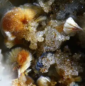 | Hábito cristalino | Microcristales capilares formando agregados afieltrados | |