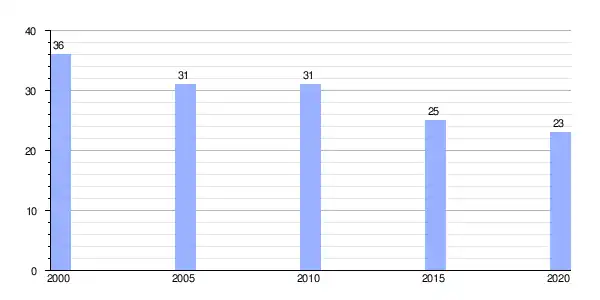 | Gráfica de evolución demográfica de Zolle (aldea) entre 2000 y 2020 |