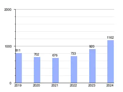 | 2020 | 702 | 152 | 20 | 43.3 | 292 | 631.8