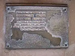 Placa conmemorativa que recuerda la apertura del gasoducto a cargo de Perón y el gobernador Solari.