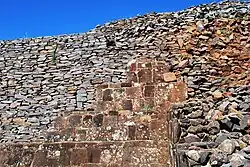 Al frente de la plataforma, mirando hacia el lago de Pátzcuaro, hay cinco pirámides yácatas en fila aproximadamente de norte a sur. A diferencia de las pirámides mexicas o mayas, estas estructuras son redondeadas, no cuadradas. Las cinco estructuras tienen forma aproximada de ojo de cerradura y están unidas en la parte posterior mediante plataformas piramidales escalonadas. El núcleo de cada una de estas estructuras está formado por escombros amontonados que luego fueron revestidos con losas de piedra decoradas con espirales, círculos y otros diseños geométricos y petroglifos.[2] Estas losas de piedra encajadas son similares a la mampostería utilizada por los incas en América del Sur. Otra distinción de esta y otras arquitecturas purépechas es que nunca se ha encontrado ningún indicio de estuco.[1][4]