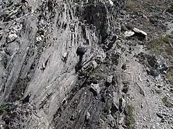 - Esta obra contiene una traducción parcial derivada de «Shear zone» de Wikipedia en inglés, concretamente de esta versión, publicada por sus editores bajo la Licencia de documentación libre de GNU y la Licencia Creative Commons Atribución-CompartirIgual 4.0 Internacional.