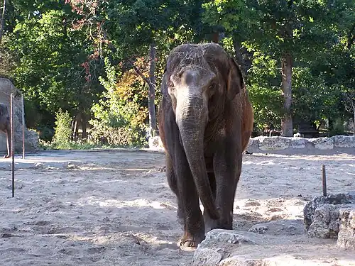 El zoológico tiene un elefante macho reproductor, Shinto (nacido en 1969), llegado el 25 de enero de 1983 proveniente del zoológico de Fréjus, y dos hembras, Alix (nacida en 1983) y Malicia (nacida en 1984), llegadas el 11 de enero de 1991. El primer nacimiento fue el 26 de octubre de 1995 cuando Alix dio a luz a Homaline. Fue seguida porJacky el 7 de julio de 1996, que fue transferido al zoológico de Pont-Scorff el 9 de octubre de 2001, y luego al zoológico d'Ostrava el 12 de octubre de 2004, donde falleció el 25 de marzo de 2005. Luego llegó Maurice el 16 de junio de 2001 y Angèle el 5 de noviembre de 2001. La última fue Ziha el 27 de enero de 2006.