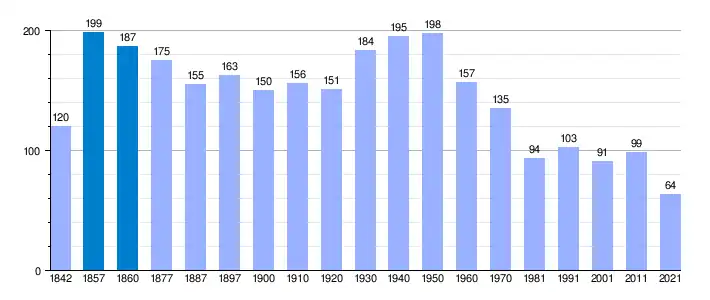 | Gráfica de evolución demográfica de Zorita de los Canes[2] entre 1842 y 2021 |
