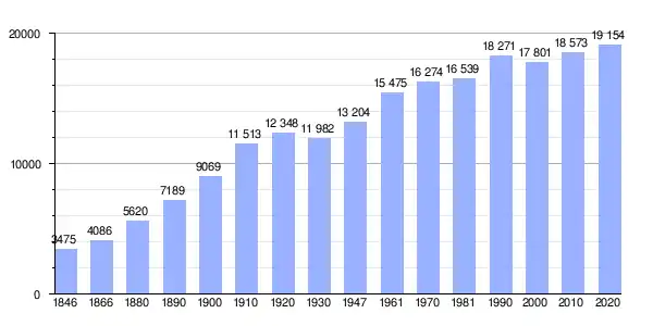 Todos los datos históricos relativos al actual municipio, el siguiente gráfico refleja su evolución demográfica, incluyendo municipios después de efectuada la fusión el 1 de enero de 1977.